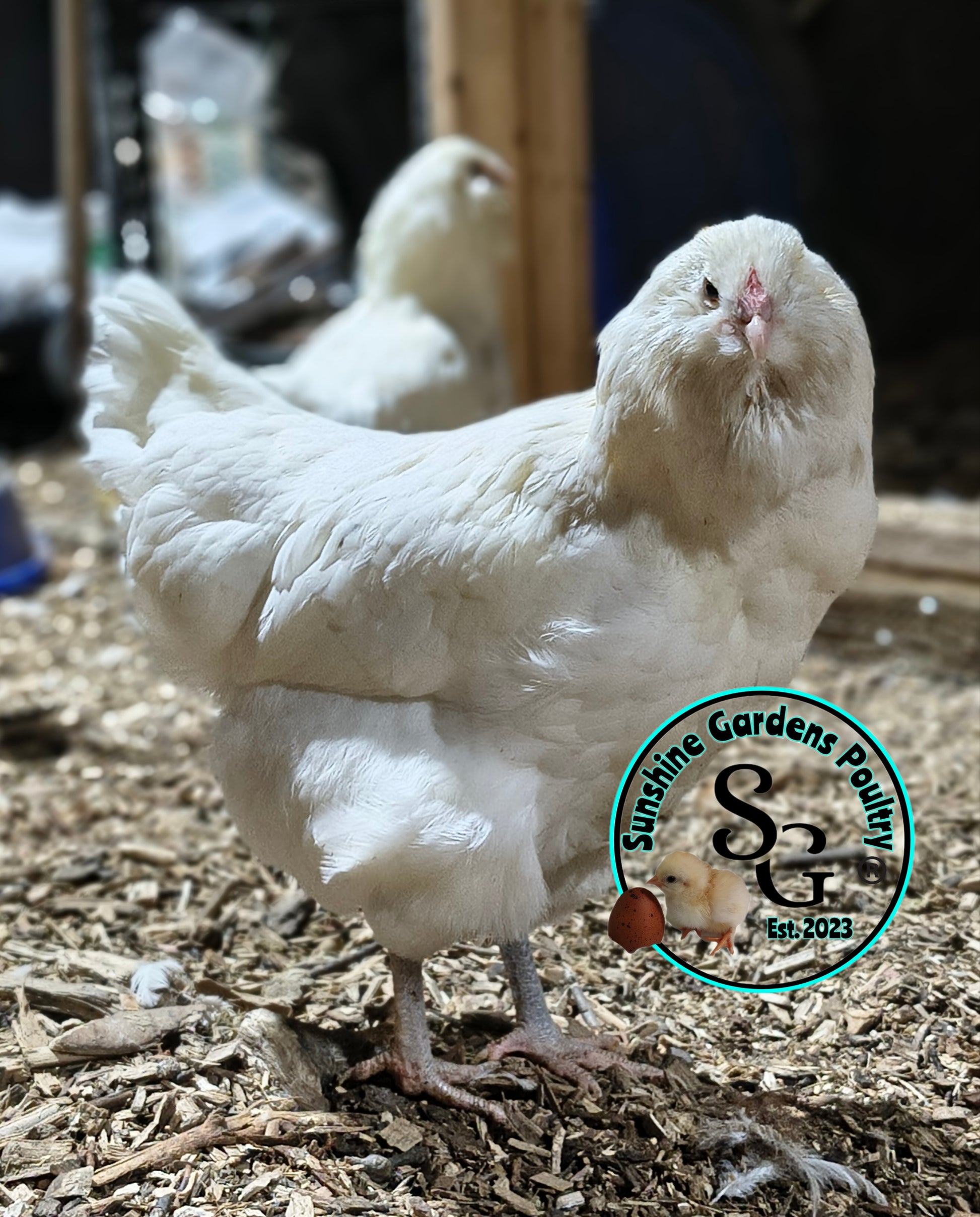 These are some of the friendliest chickens I have! They are purebred, not the hatchery's trickery of misspelling "Americana" also known as Easter Eggers. They will lay gorgeous blue eggs. Ameraucanas are wonderful birds to keep as pets, and GREAT around children. I never knew a white bird could be so beautiful until I started working with this flock!!